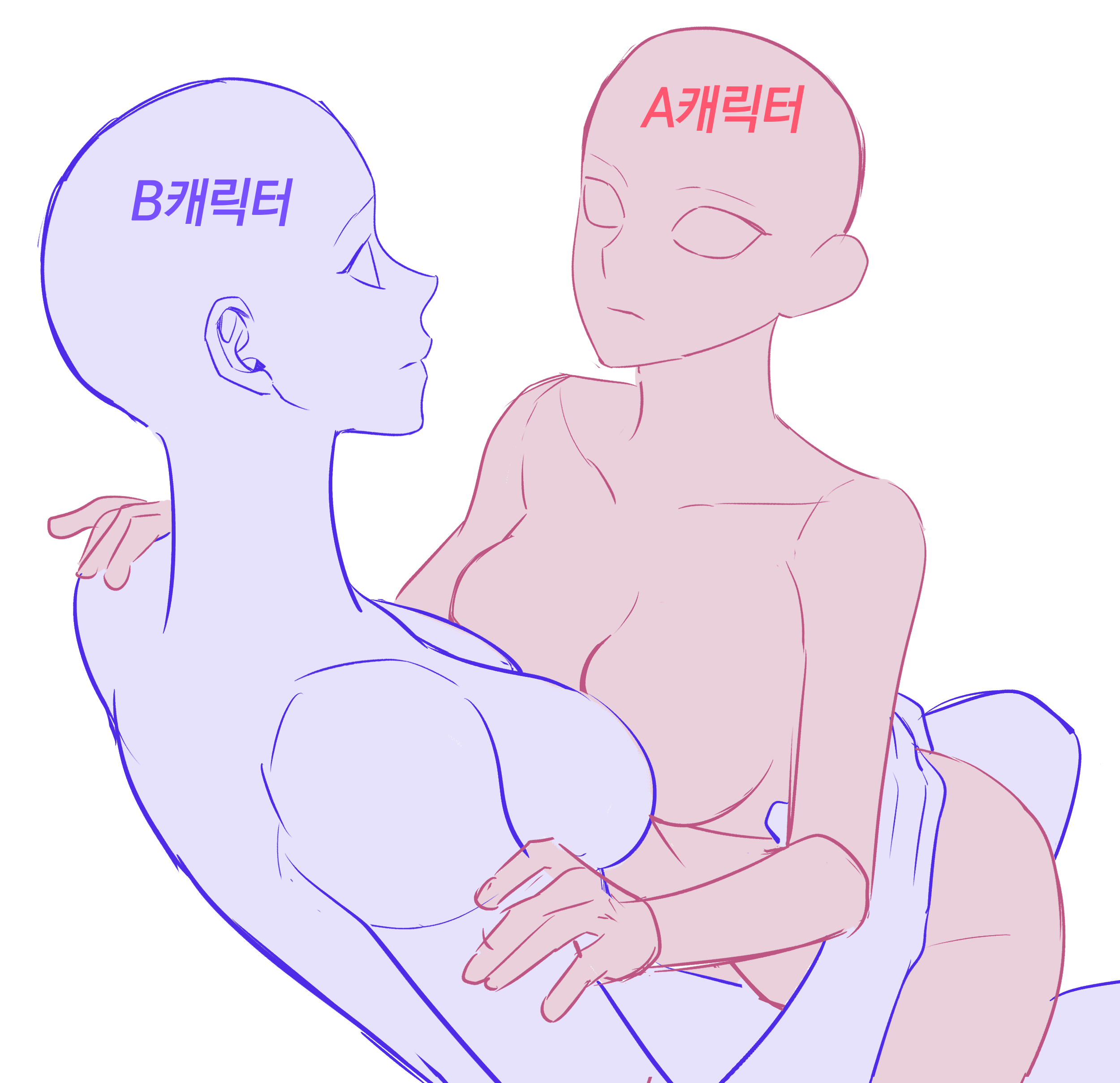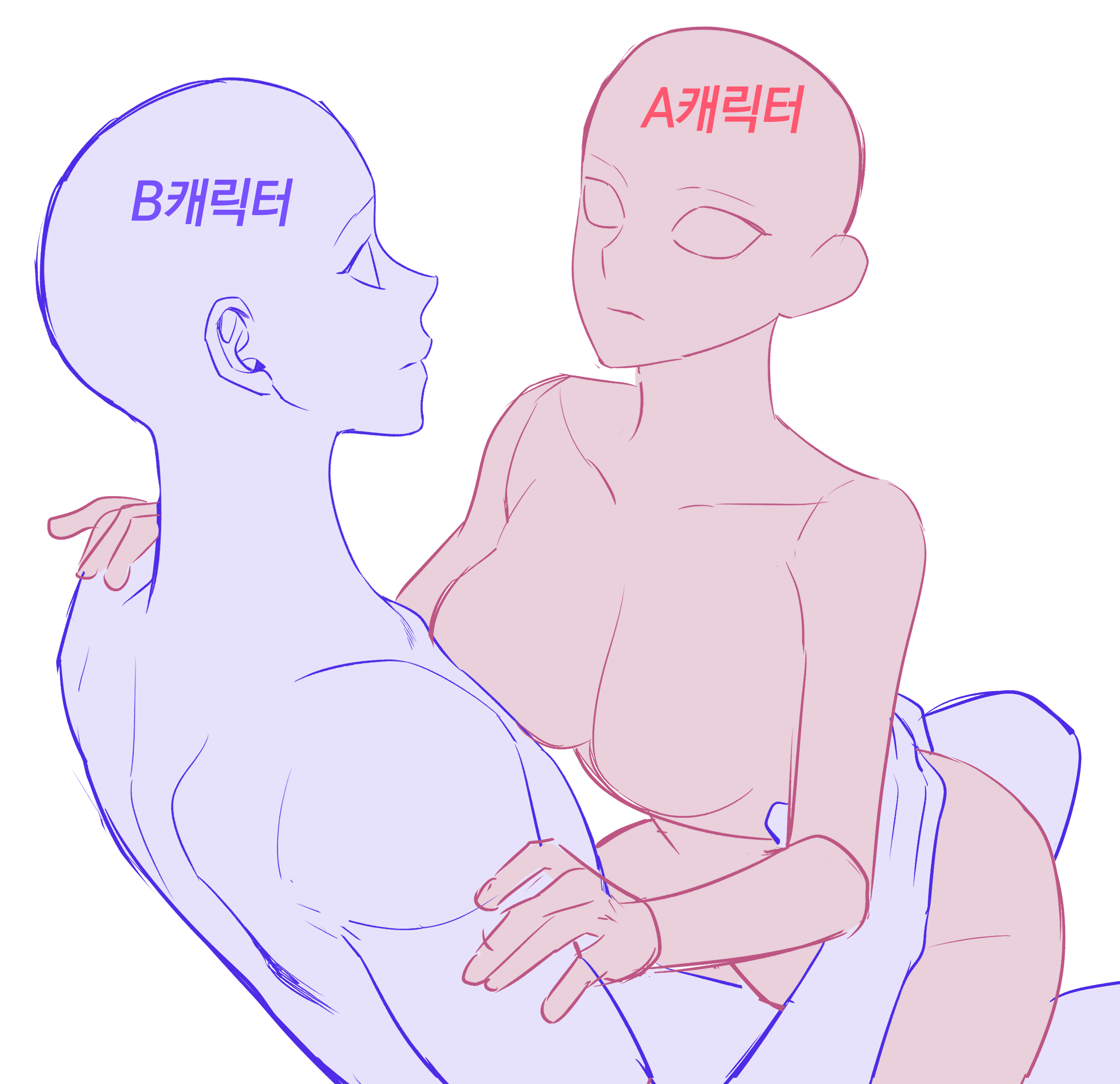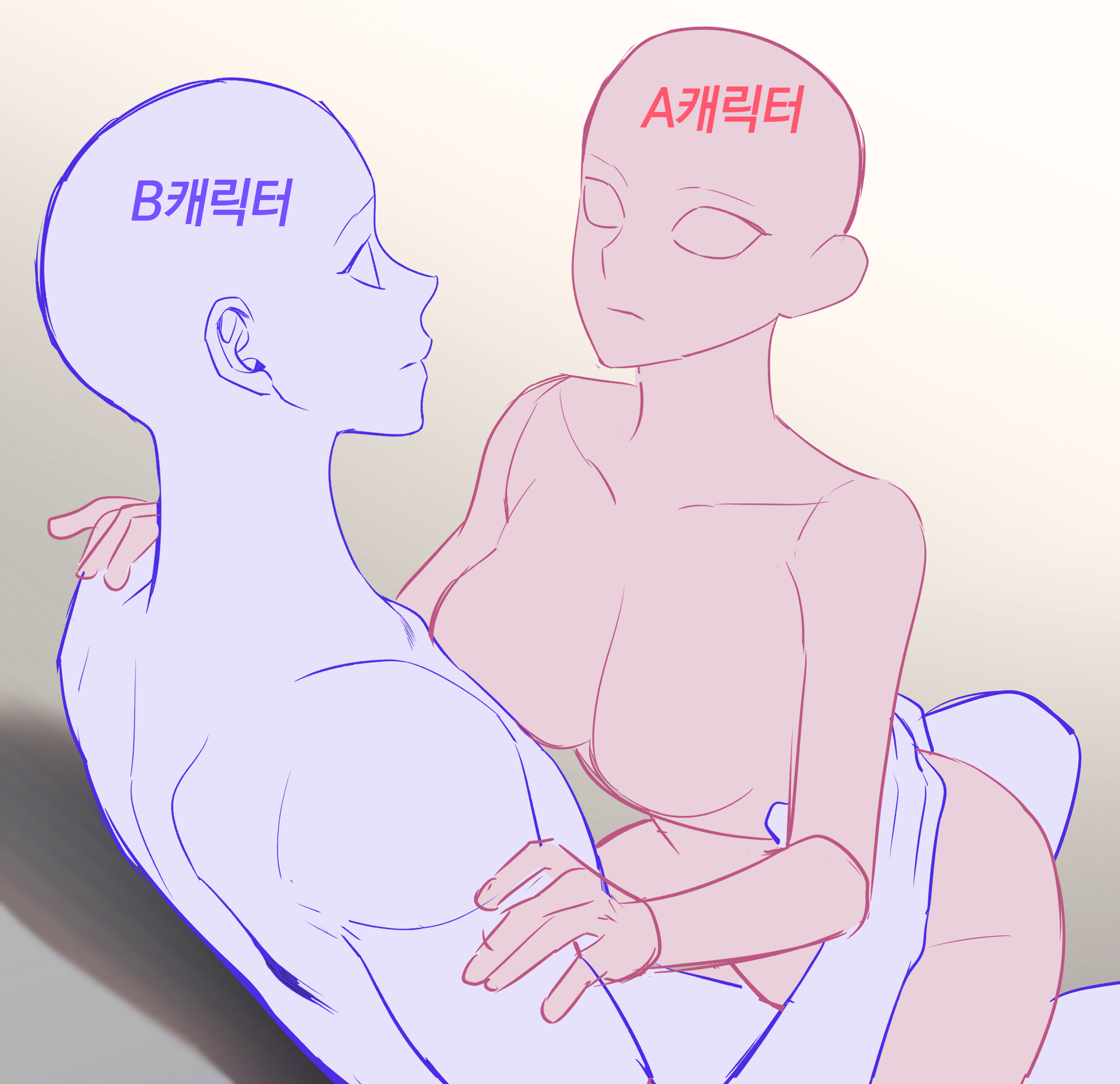 (얼굴 라인 눈 묘사 등을 일컫습니다. 두 캐릭터의 손 포즈는 고정입니다.)